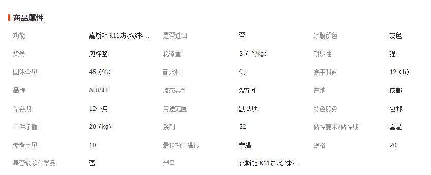 嘉斯頓K11柔韌型防水涂料衛(wèi)生間廚房通用補(bǔ)漏砂漿膠漿外墻20kg