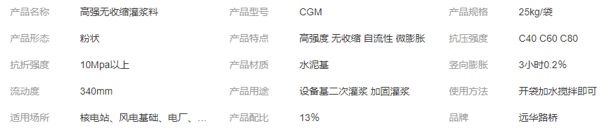 遠(yuǎn)華牌 機(jī)械設(shè)備無墊安裝 水泥基二次高強(qiáng)灌漿料 H-80型